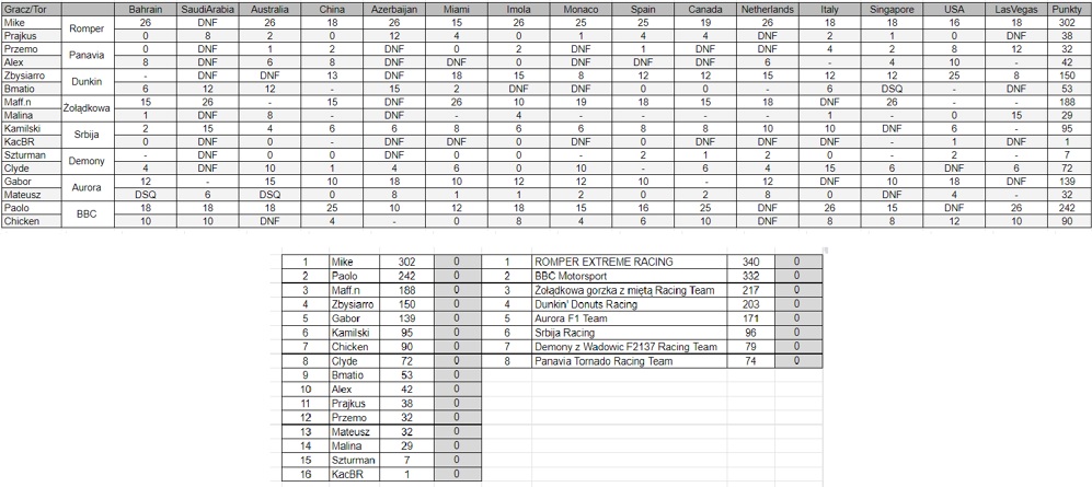 - Mateusz (Aurora F1 Team) – dyskwalifikacja za liczne kary.