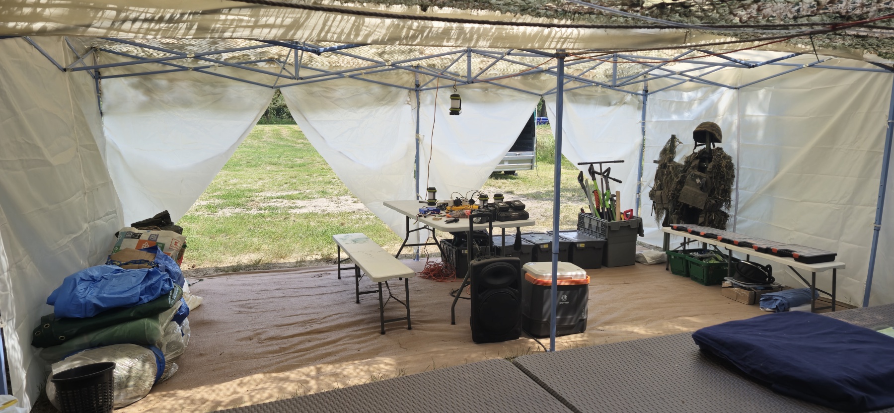 Część magazynierska została przeznaczona na sprzęt ASG, gwarantując odpowiednią organizację ekwipunku i łatwy dostęp do potrzebnych zasobów. Dzięki temu wszystkie niezbędne elementy są zawsze pod ręką, gotowe do użycia.