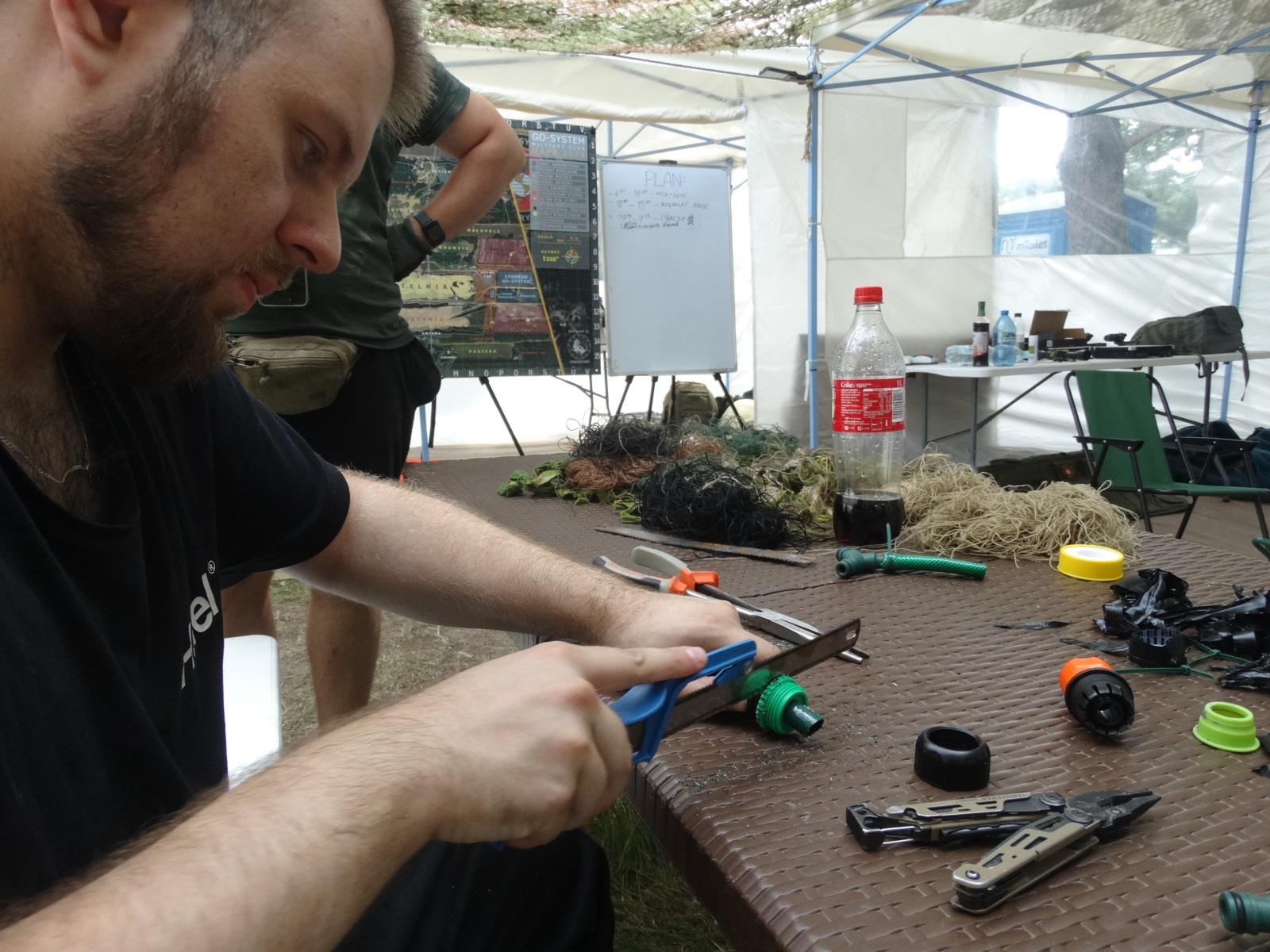 Część warsztatowa została wyposażona w niezbędny sprzęt serwisowy, pozwalający na naprawy i konserwację ekwipunku. Każdy uczestnik może tu znaleźć narzędzia do szybkich poprawek, co zwiększa sprawność operacyjną całej grupy.